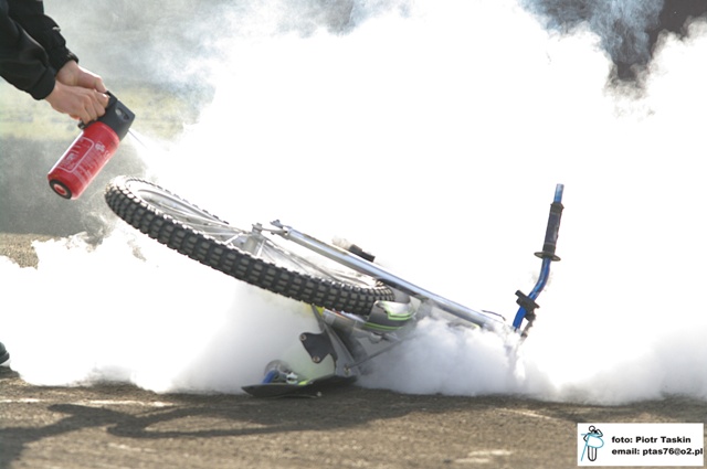 płonący motocykl