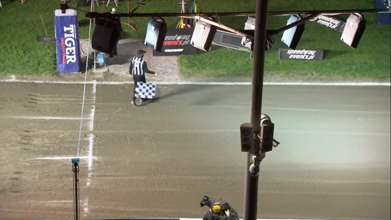 Pieszczek najlepiej ze startu lecz Miedziński nie odpuszcza i rzuca się w pogoń za prowadzącym. Na ostatnim łuku ostrym atakiem Miedziński powoduje upadek i zostaje wykluczony a wyniki zaliczone.